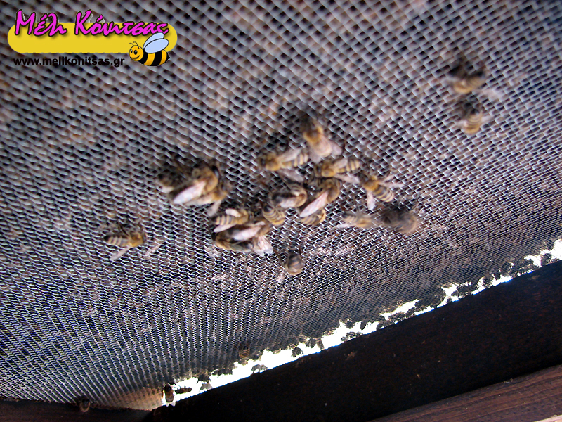 Αυτή είναι η θέα κάτω από την κυψέλη που κάθεται σε έναν 100% αεριζόμενο πάτο χωρίς πατούρα δικής μου κατασκευής. Το 100% παίζει ρόλο καθώς όλα τα βαρρόα που “γλιστράνε” βγαίνουν έξω από την κυψέλη και γίνονται βοσκή για άλλα πλάσματα. Όταν μια κυψέλη διαθέτει τόσο μεγάλη έκταση για αερισμό ΔΕΝ ΠΡΕΠΕΙ να αερίζεται από πάνω. Αυτό το θέμα αποτελεί από μόνο του ολόκληρο κεφάλαιο και τροφή για άλλο άρθρο. Περιληπτικά θα πω πως αυτό που σίγουρα δεν πρέπει να υπάρχει μέσα σε μια κυψέλη δεν είναι το κρύο, δεν είναι η υγρασία αλλά τα ρεύματα αέρα. Αυτά κατά την γνώμη μου έχουν την δυνατότητα να αφανίσουν ένα μελίσσι.