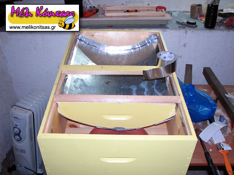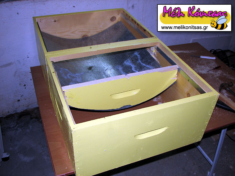 Βασικά χρειαζόμαστε δύο σώματα κυψελών, ένα κομμάτι λαμαρίνα, τζάμι, δύο μεντεσέδες και μερικά ξύλα και μερικά άλλα πραγματάκια.